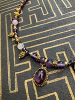 Purple and gold theme necklace featuring a stunning Amethyst cabochon pendant, handmade in a India.