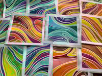 Handpainted paper stickers featuring a colourful flowy watercolour design