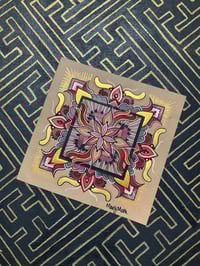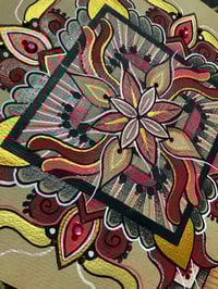 Square red mandala on scrap watercolour paper